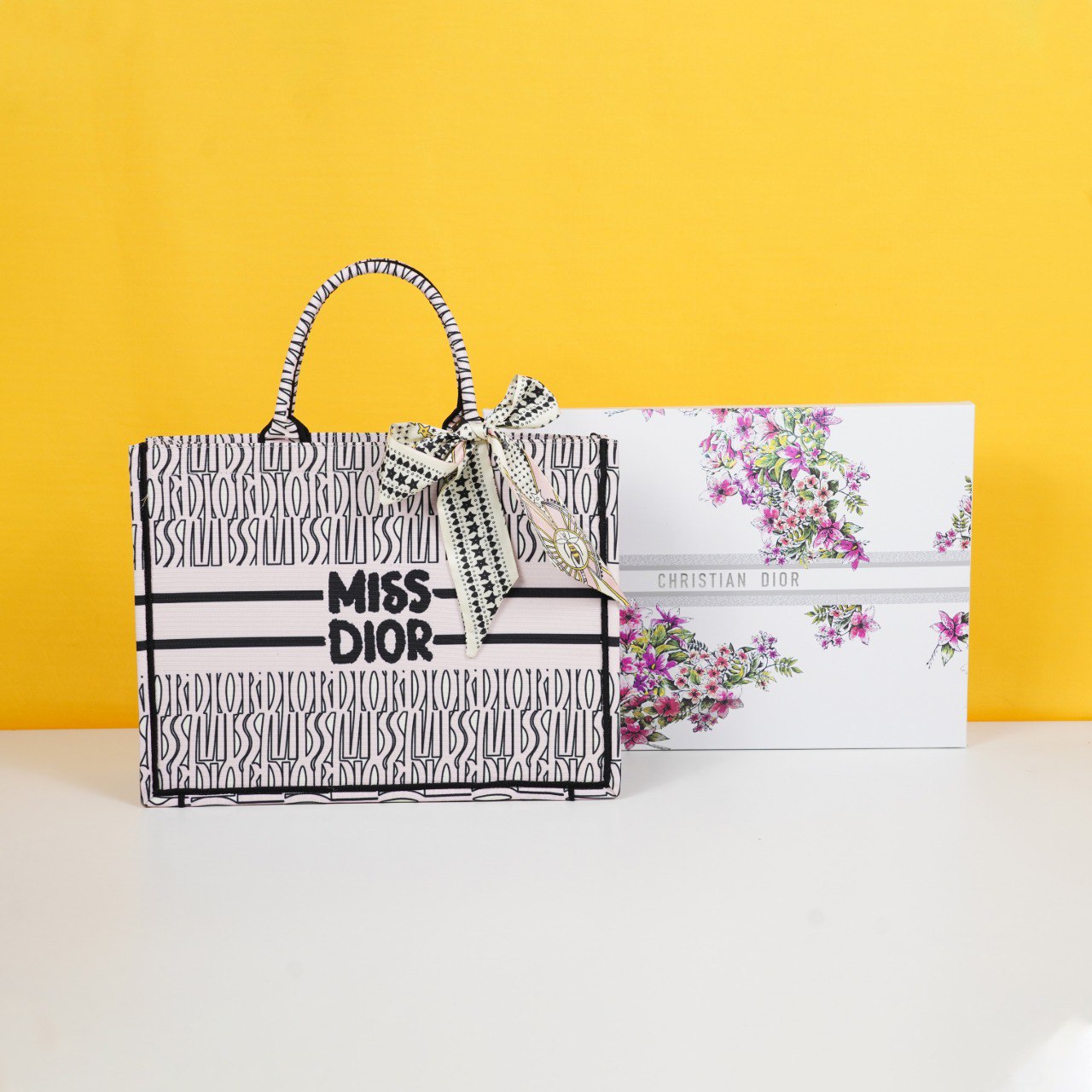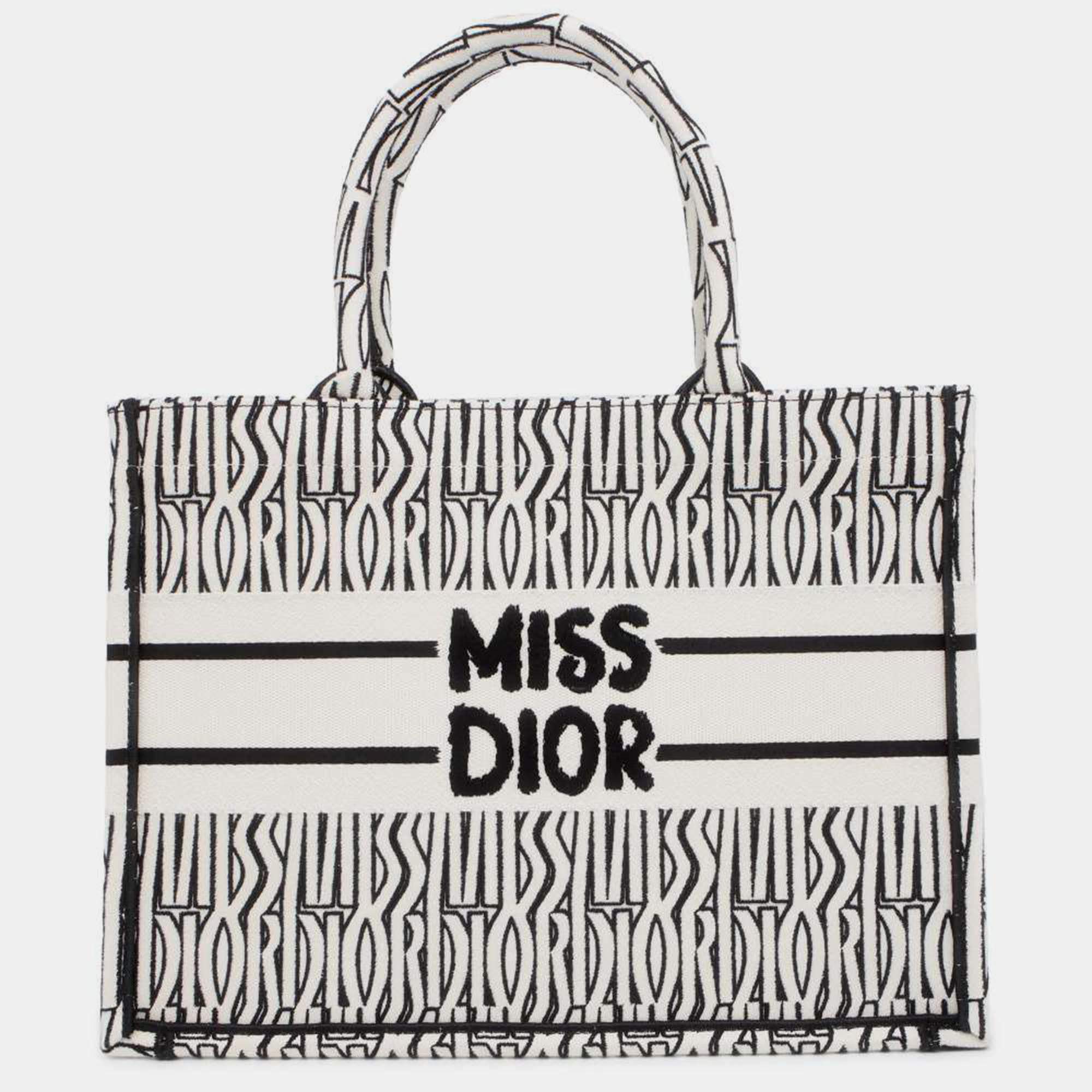 The Book Tote is a signature piece from the House of Dior, designed by Maria Grazia Chiuri. This tote is recognized for its spacious design and intricate embroidery, making it both a practical and stylish accessory.