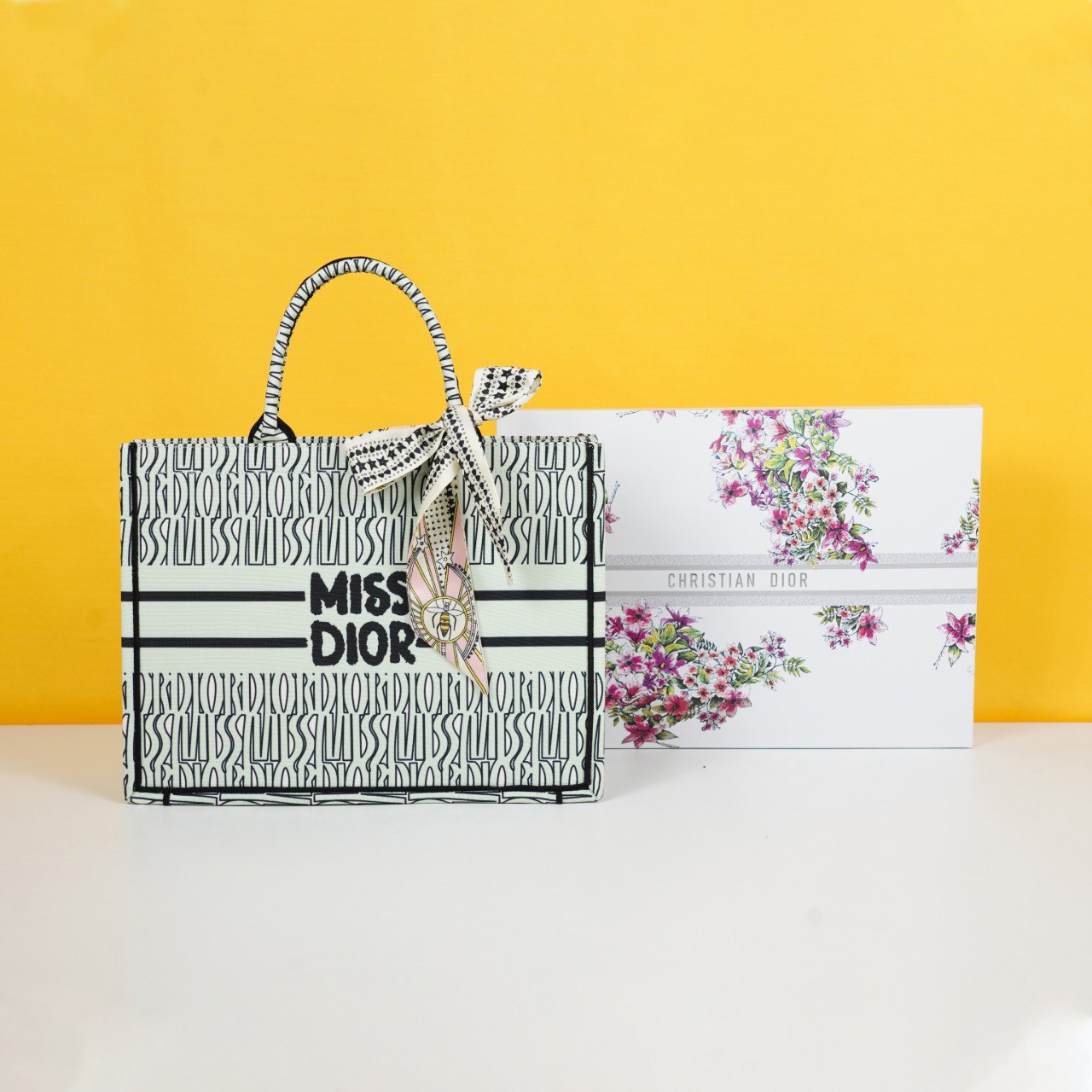 The Book Tote is a signature piece from the House of Dior, designed by Maria Grazia Chiuri. This tote is recognized for its spacious design and intricate embroidery, making it both a practical and stylish accessory.