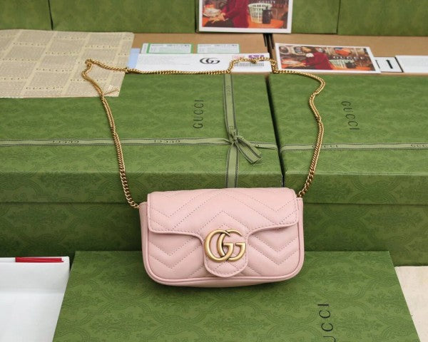 Mini GG Marmont Matelassé Shoulder Bag With OG Box & Dust Bag (Pink - 908)